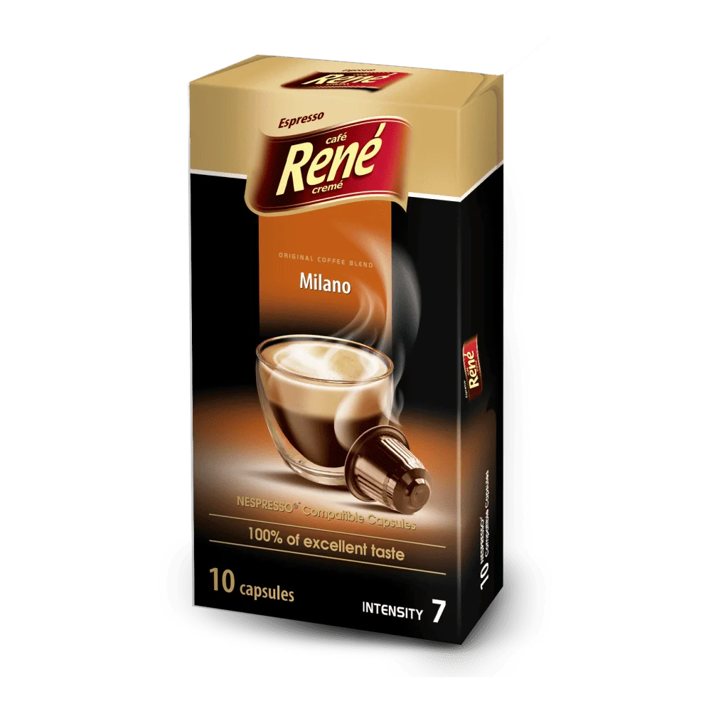 Кофе бренда Rene облагает уникальным вкусом, сочетающим в себе насыщенный и бодрящий аромат. В составе бренд использует только натуральные компоненты, что позволяет добавиться высокого качества. Кофейные зёрна высушиваются и проходят деликатный процесс обжарки, в результате получается уникальный напиток без потери качества. Капсулы кофе Rene подходит для кофе-машин, работающих на системе Nespresso и Dolce Gusto.