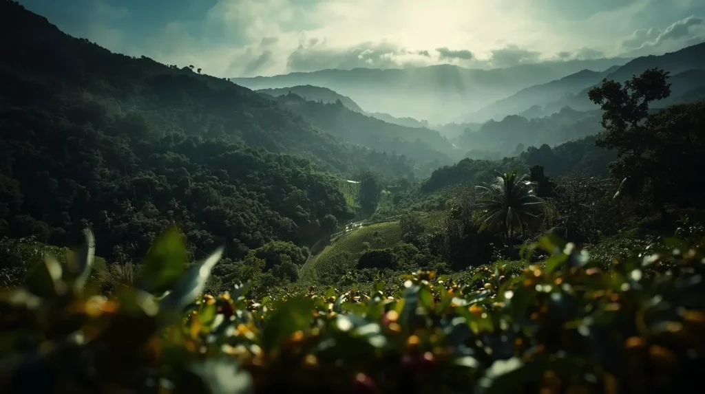 - Нариньо (Nariño): Кофе с самых высоких плантаций Колумбии (до 2300 м). Большая высота замедляет созревание ягод, делая вкус более сложным и утонченным. Он отличается более деликатным телом, ярким цветочным ароматом и сложной, игривой кислотностью с нотами лимона и красных ягод.