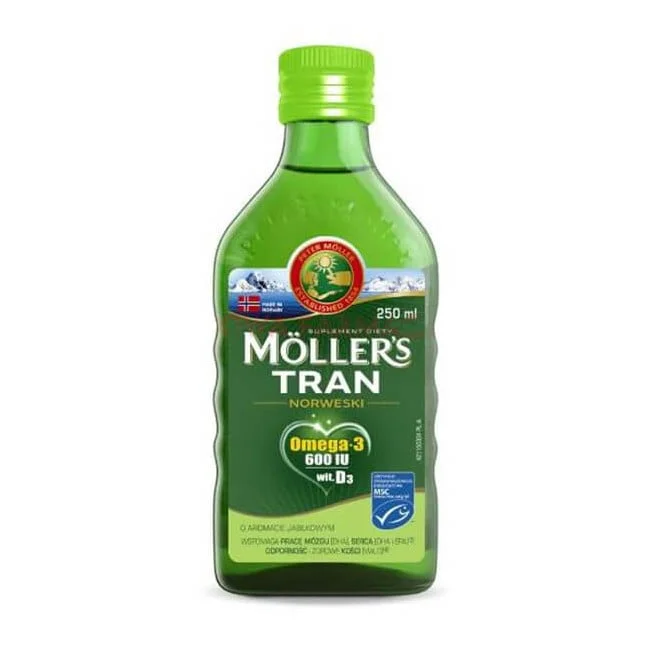 Möller’s Omega-3 рыбий жир со вкусом яблока — 100% натуральный рыбий жир из печени норвежской арктической трески Мёллер — богат Омега-3 жирными кислотами и витаминами D, А и Е. Оригинальное производство с 1854 года. Позаботьтесь о себе и своих близких, употребляя чрезвычайно полезные для организма омега-3 жирные кислоты, которые поддержат ваш организм и укрепят здоровье.